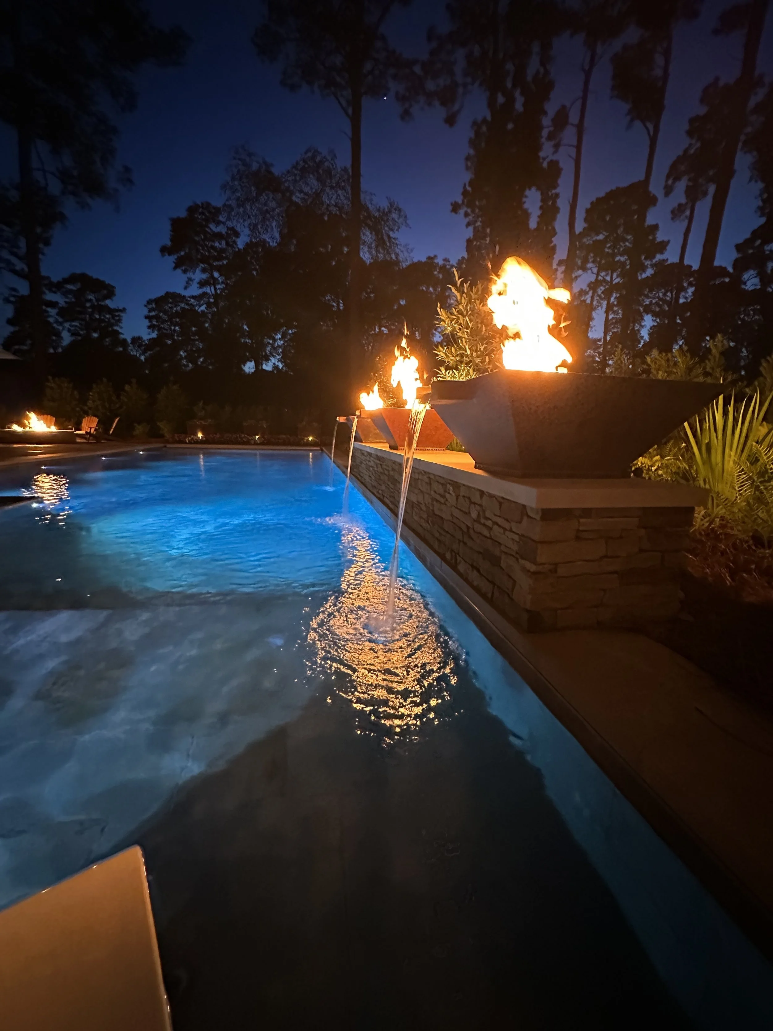 distinctive WATER & Fire FEATUREs, FIRE PITs, & soothing fountains